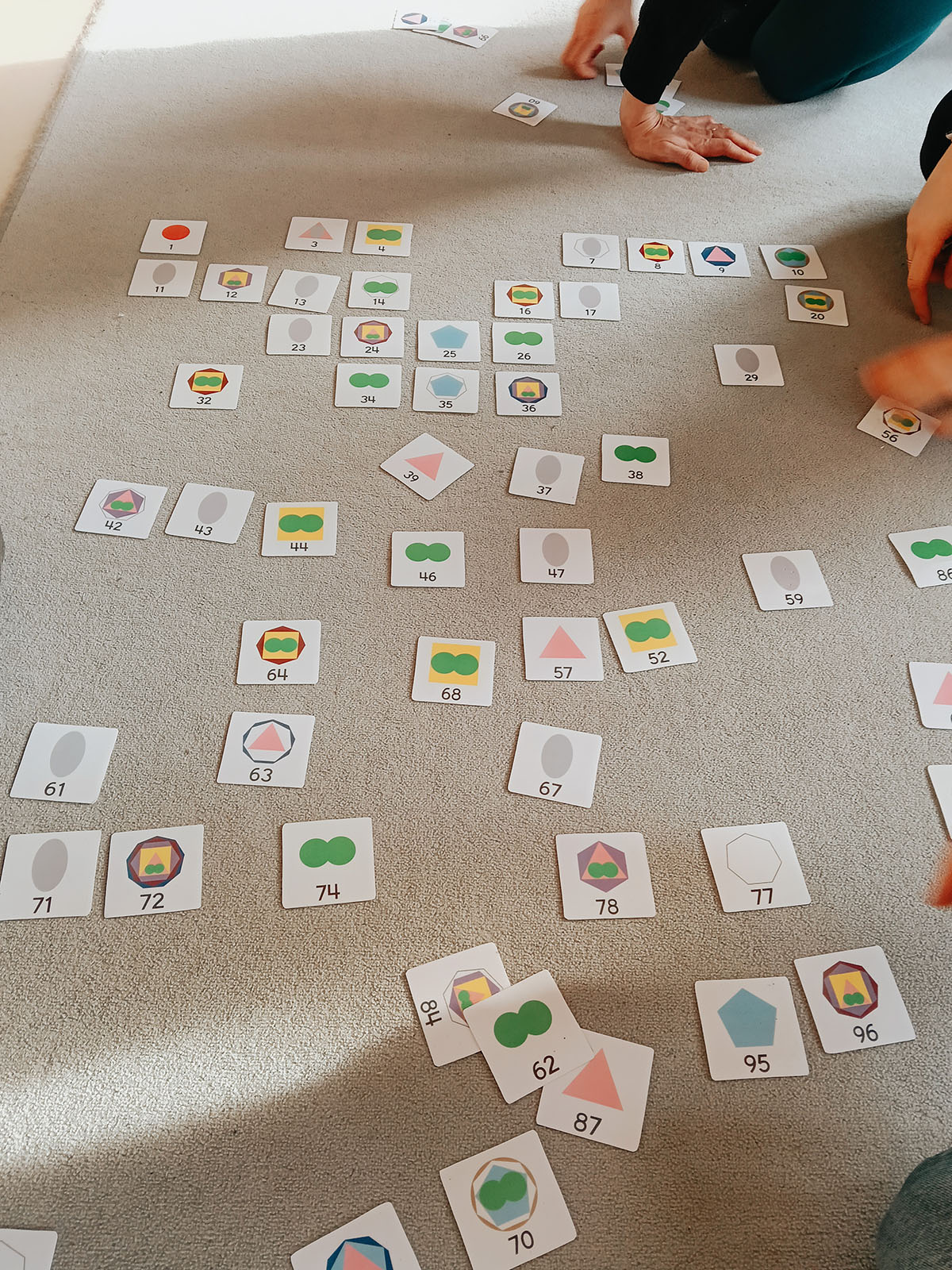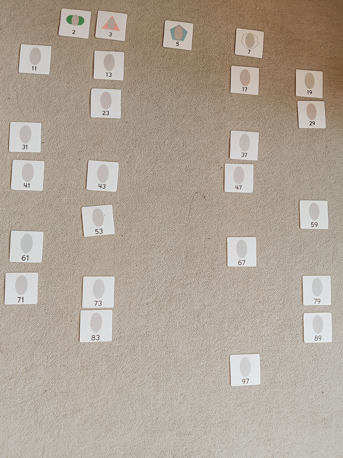 Besonders interessant war dabei das Material zu den Primzahlen, mit dem wir am Ende des Arbeitens alle Primzahlen von 1 bis 100 vor uns liegen hatten – wie cool! Hier ein paar Eindrücke davon!